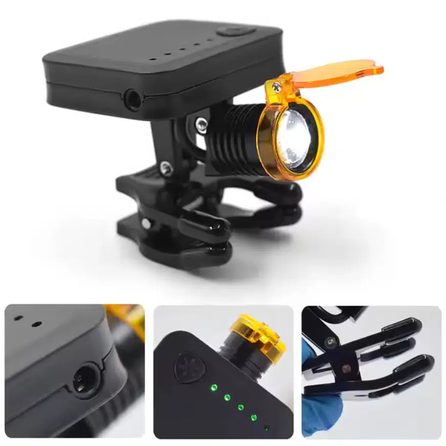 Mikrocerrahi laboratuvar çalışma gözlük üstü led far, diş hekimlerince de çokça kullanımına ihtiyaç duyulan bir üründür. Klip kullanımı gözlük üstünde oldukça rahat ve hafiftir. Gözlük üstüne ekstra ağırlık bindirmez, klip tutması kaliteli ve sağlam olup yerinden düşmez.