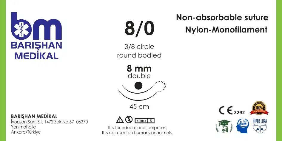 | Etiketler | MikroTurCU Tekli Dikiş İğne İplik 8/0 3/8 Yuvarlak 8mm Çift İğne 45 Cm Yuvarlak Gövde Mikrocerrahi Eğitim Materyali |